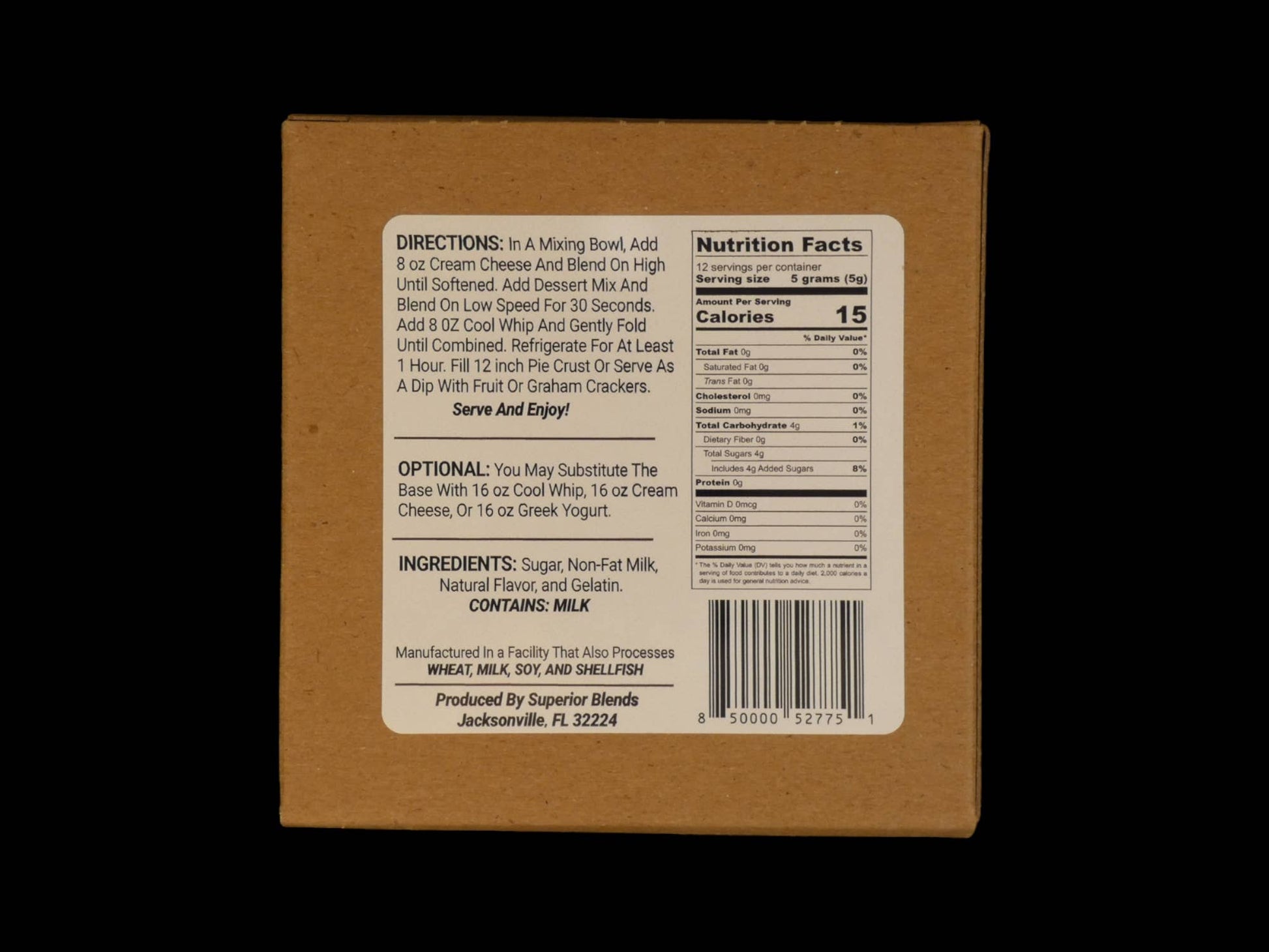 Stand up box perfect for display - Box contains 1 Carmel Apple Dessert Mix Packet - Sugar, Non-Fat Milk, Natural Flavor, and Gelatin.