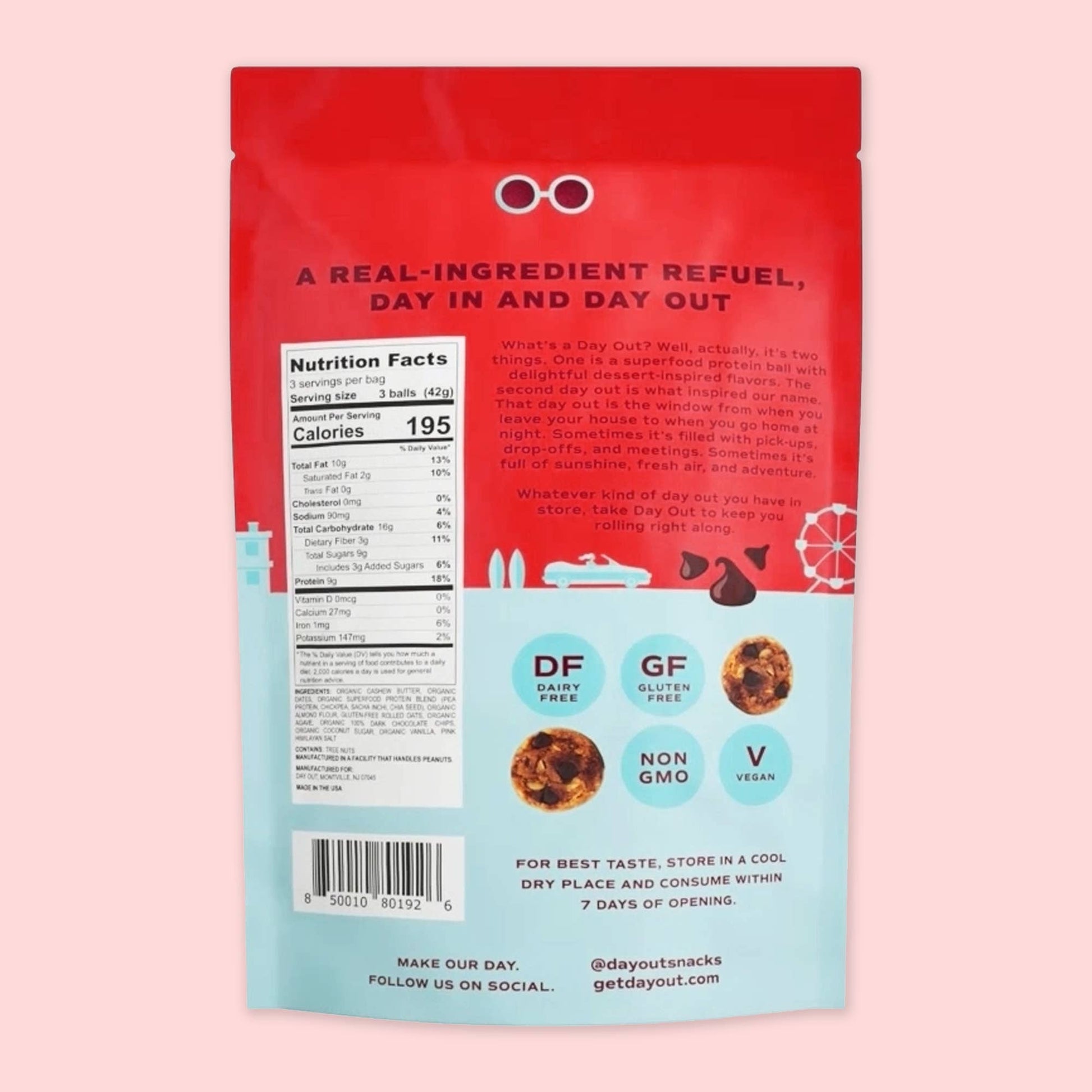 Includes 12 multi-serve packs. Nine protein balls per bag.