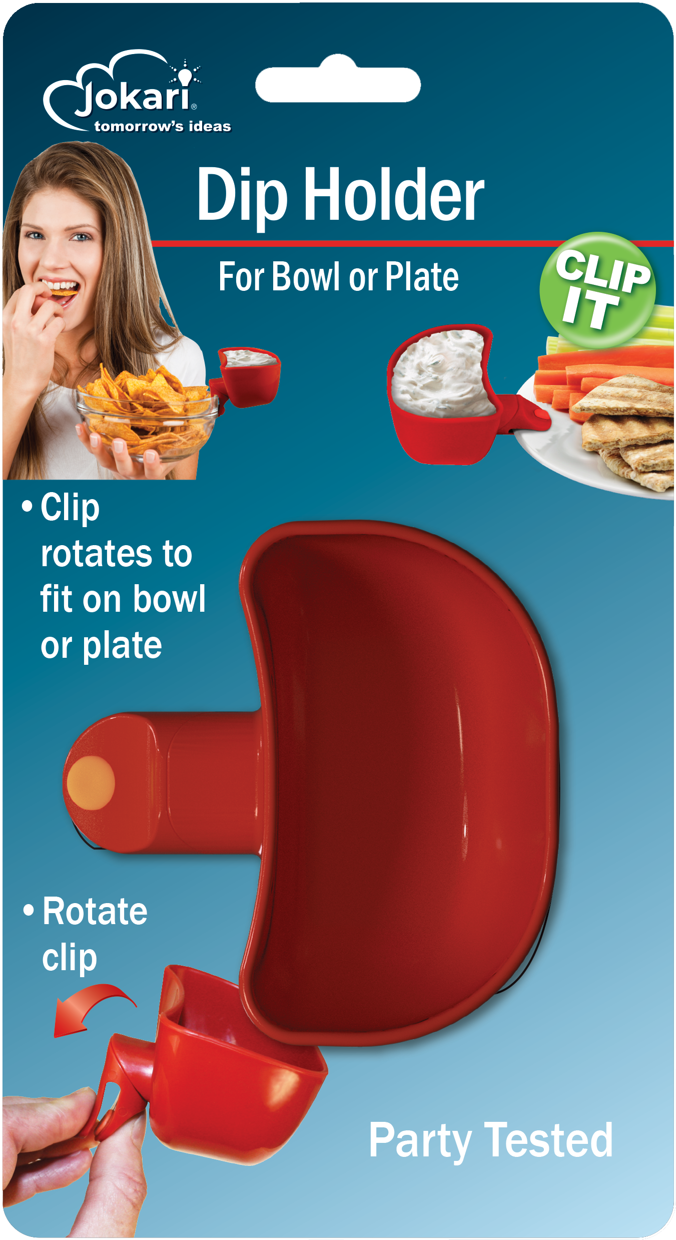 The Dip Holder attaches to the edge of your plate or rotate the handle to attach to a bowl. Holds your dip out of the way so you have room to fill your plate with more! Holds 1/2 cup of dressing, dip or salsa.