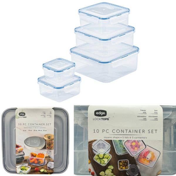 Edge Housewares - 10PC Container Set - 11OZ-21OZ-39OZ-64OZ-97OZ - 5 Lids And 5 Containers - Clear Lid Style