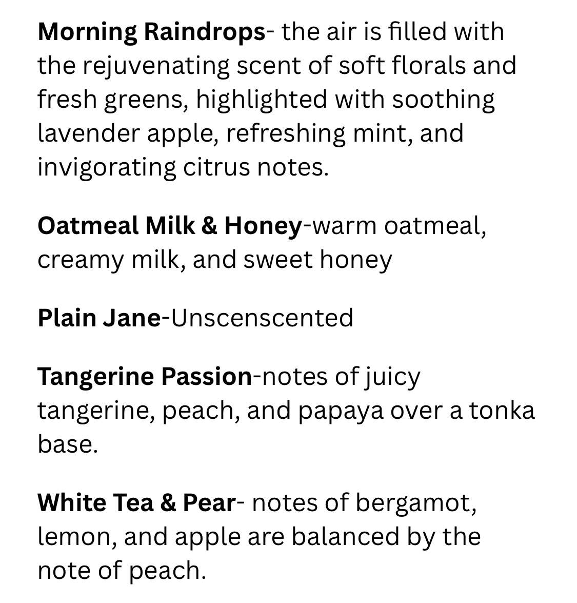 Ingredients: Distilled Water, Potassium Hydroxide, Glycerin, Coconut Oil, Olive Oil, Oleic Acid, Fragrance, Preservative, Liquid Color.