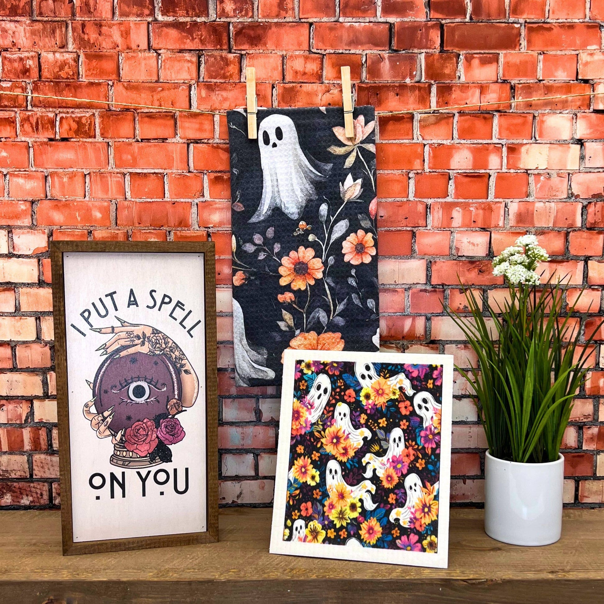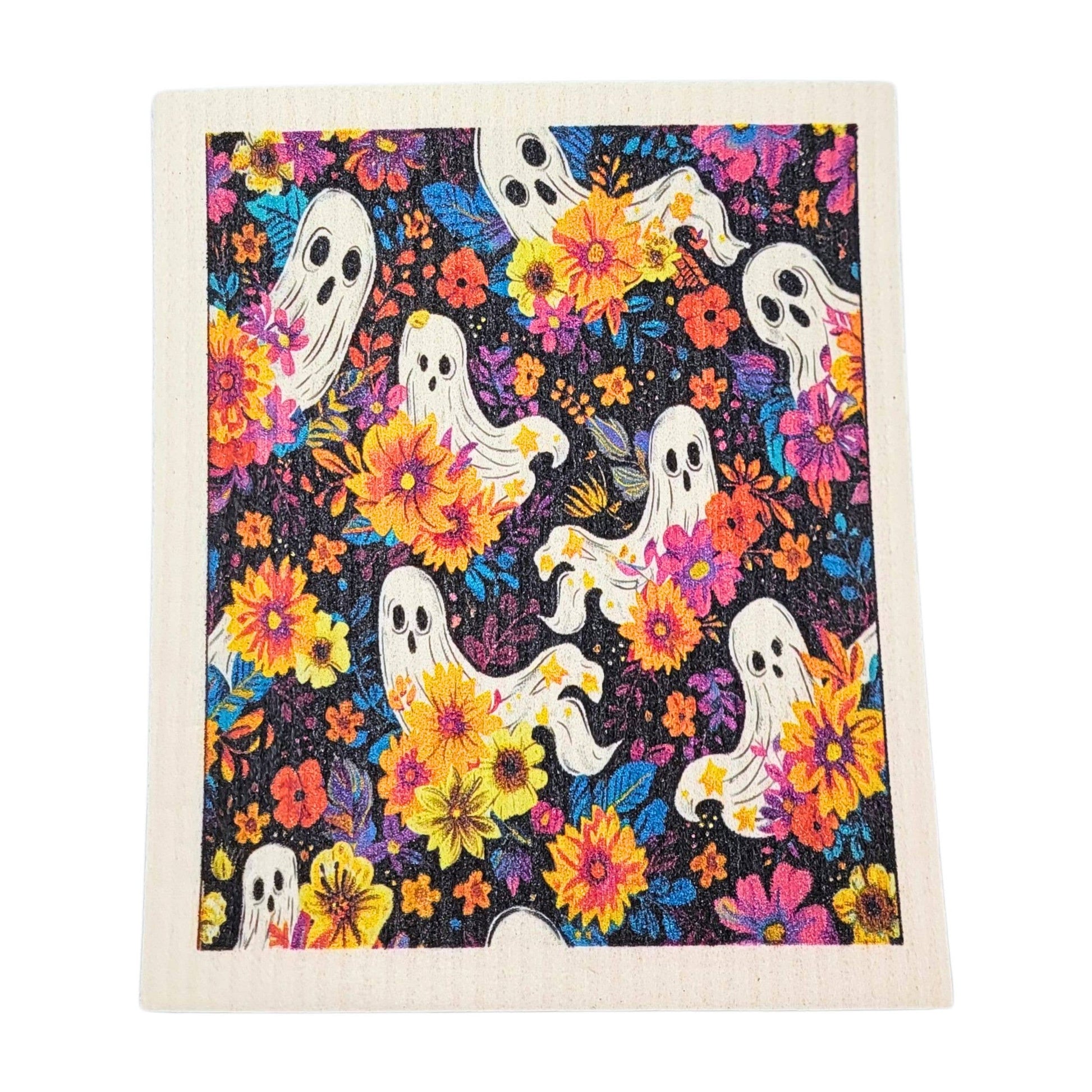 Groovy Flowers Halloween Ghosts Swedish Dishcloth Fall Decor