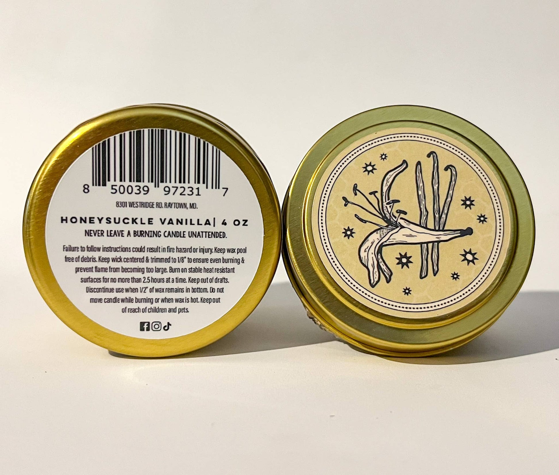 Honeysuckle Vanilla Bean 4oz. Candle - Paraffin free!
