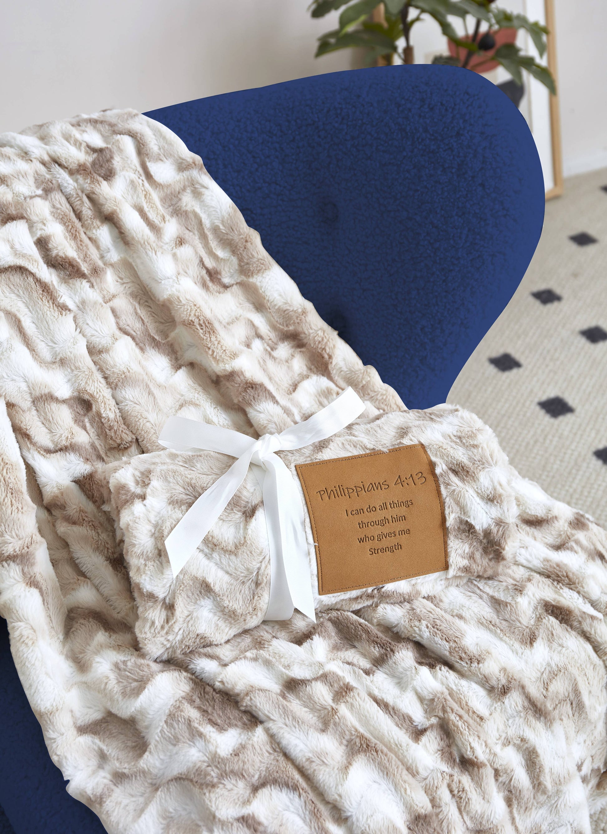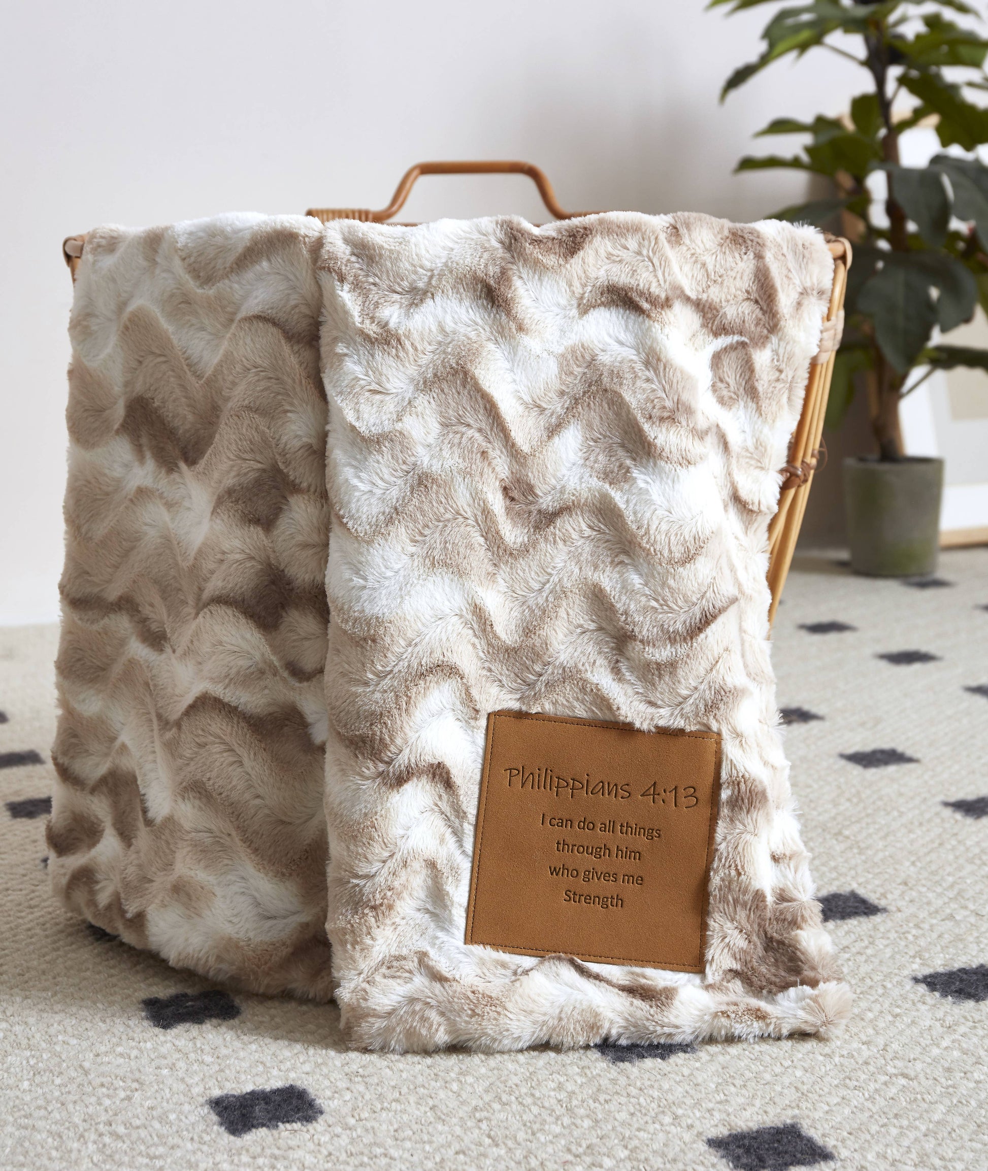 "I Can Do All Things" 1-Ply Faux Fur Patch Throw 50"x60"