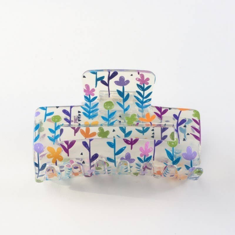 Brighten up your hairstyle with these Jumbo Floral Sunflower Rectangle Hair Claw Clips! Featuring a bold sunflower design and pretty multi color flower, these oversized clips provide a secure and stylish hold for all hair types.