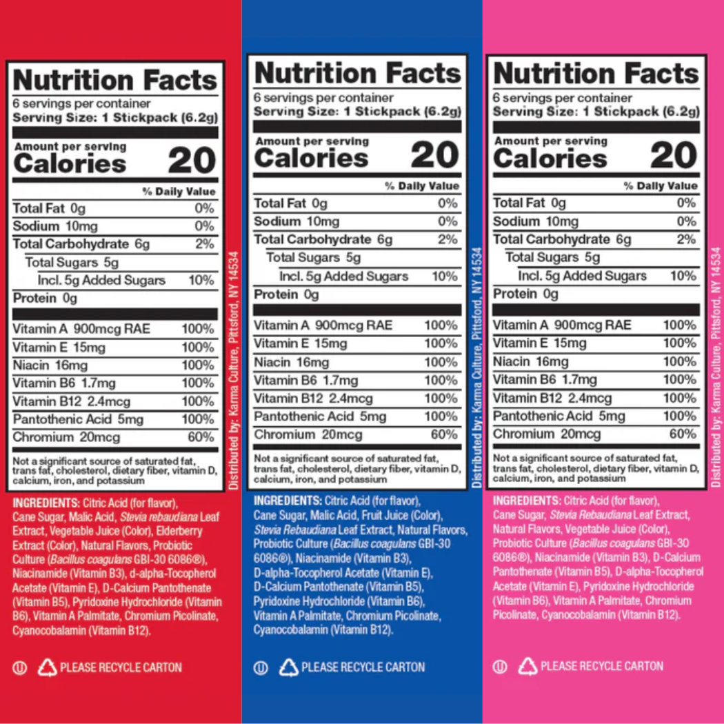 Deliciously refreshing and packed with functional benefits, Karma Probiotic Stick Packs deliver digestive health and immune support anytime, anywhere.