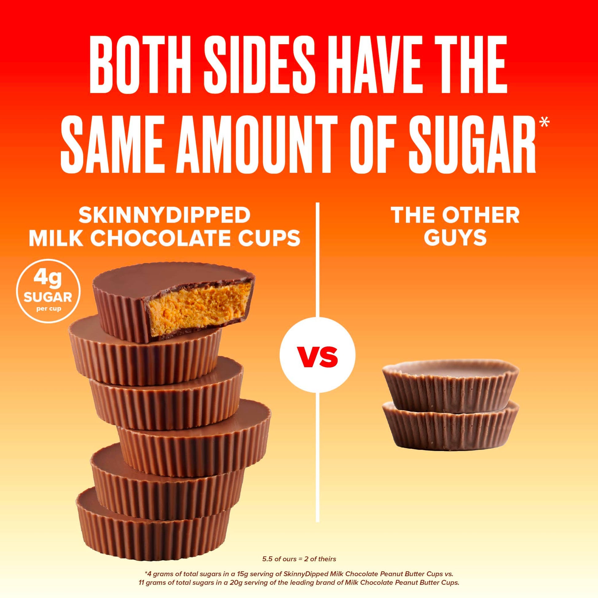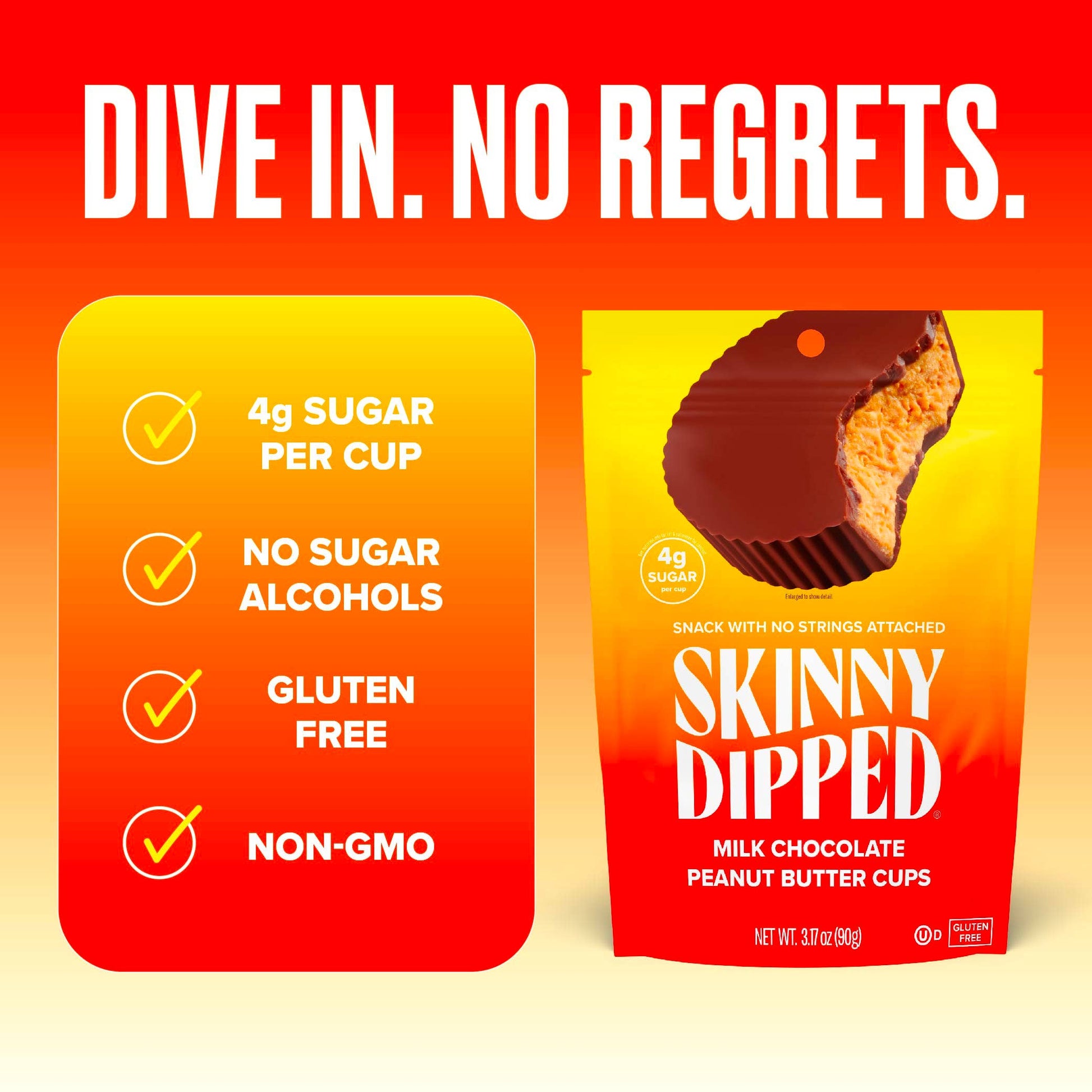 Made for true peanut butter cup connoisseurs, with a blend of perfectly salty peanut butter and velvety milk chocolate. Our Milk Chocolate Cups are created with simple, premium ingredients. Free from, sugar alcohols and artificial sweeteners. Only 4g of sugar per cup. It's Time to Snack with No Strings Attached.