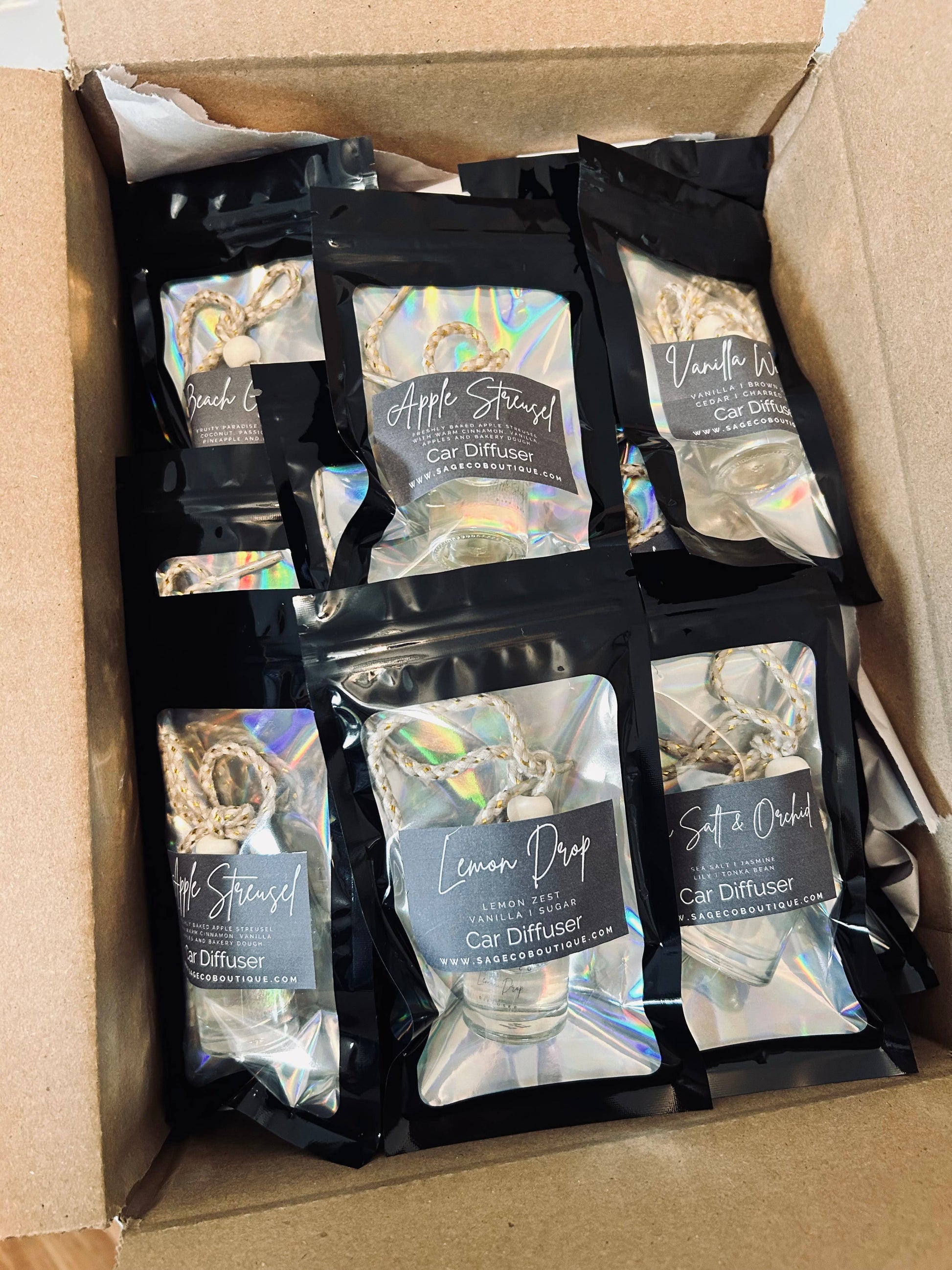Car Fragrance Diffusers hang from the rear view mirror and release scent whenever turned upside down.