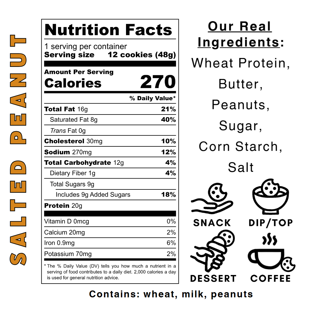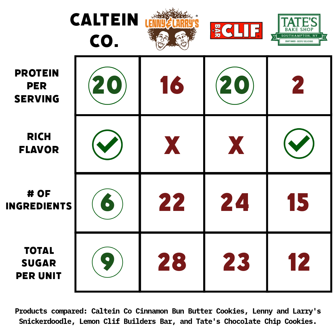At Caltein Co. we believe that everyone should enjoy getting their protein. That's why every bag of our Butter Cookies has 20 grams of protein, uses just a few simple ingredients, and tastes authentically baked - nothing artificial.