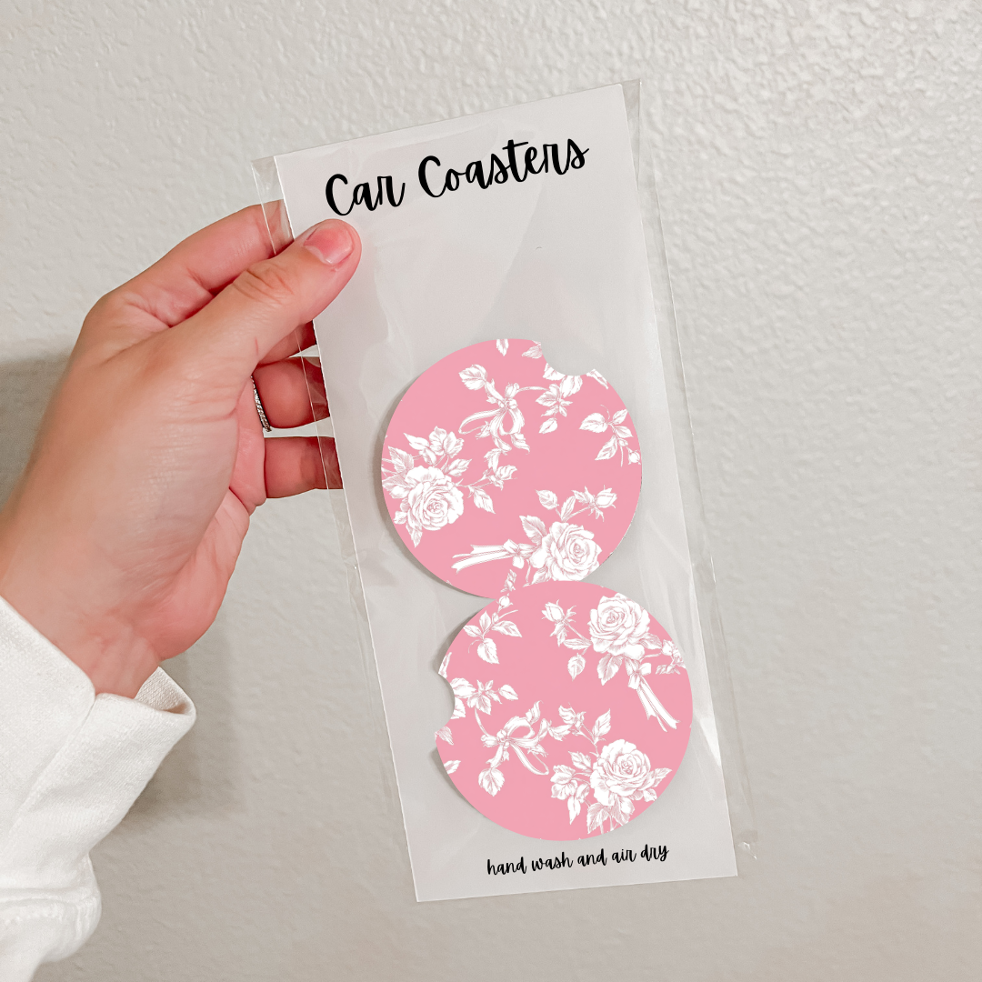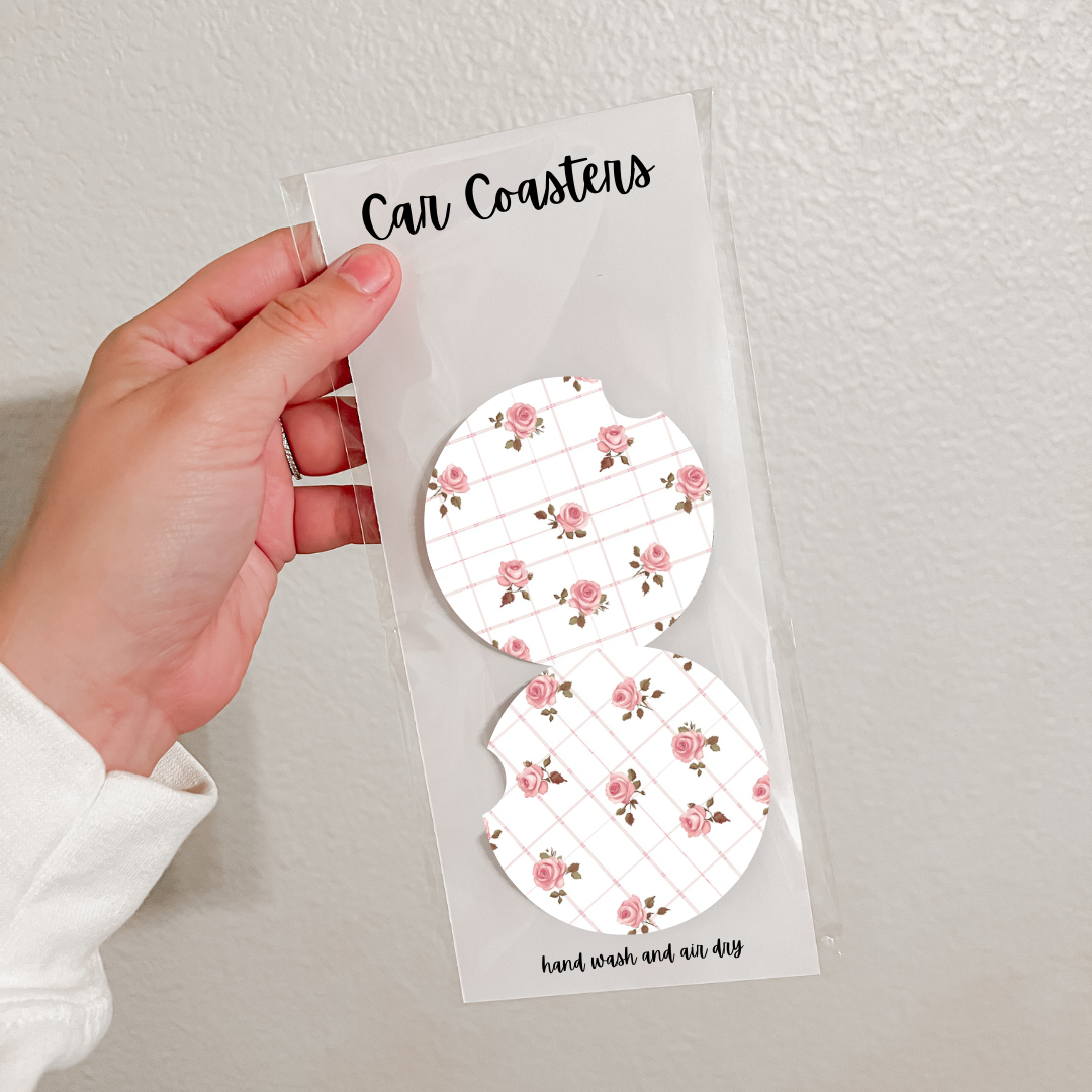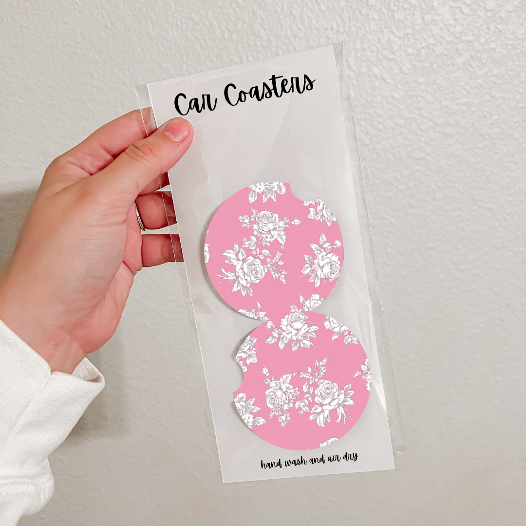 Set of 2 Neoprene Car Coasters | Blue Florals (18 Options)