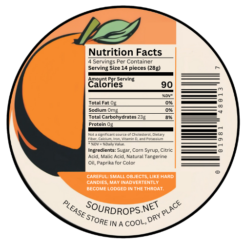 Ingredients: Sugar, Corn Syrup, Citric Acid, Natural Tangerine Oil, Malic Acid, Paprika for Color