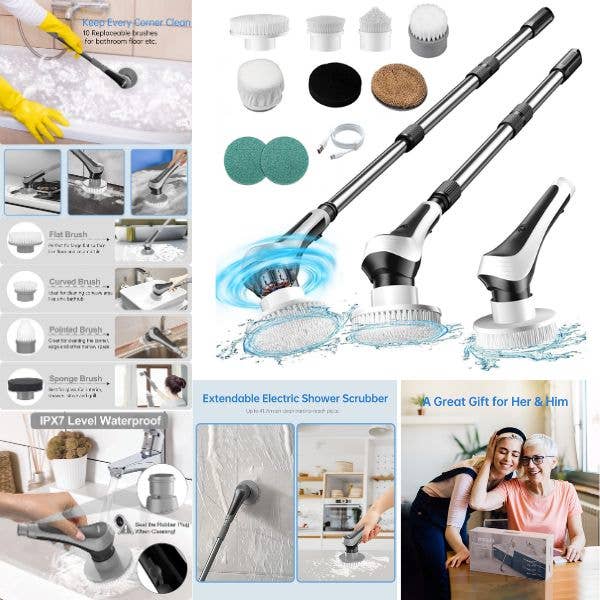 Vovguu Spin Scrubber - Premium #DB1001 - Expandable to 6' - 10 Different Cleaning Heads - USB Charging
